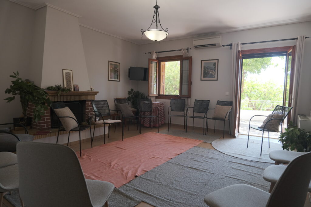 There are many benefits to conducting the constellations in our cosy lodging such as the time saved and the familiarity with the space. There is a balcony with a panoramic view and outside spaces so it feels open and one can hear birdsong and let fresh air inside. However it is because of the size of this space that participatants will be limited to 24.
