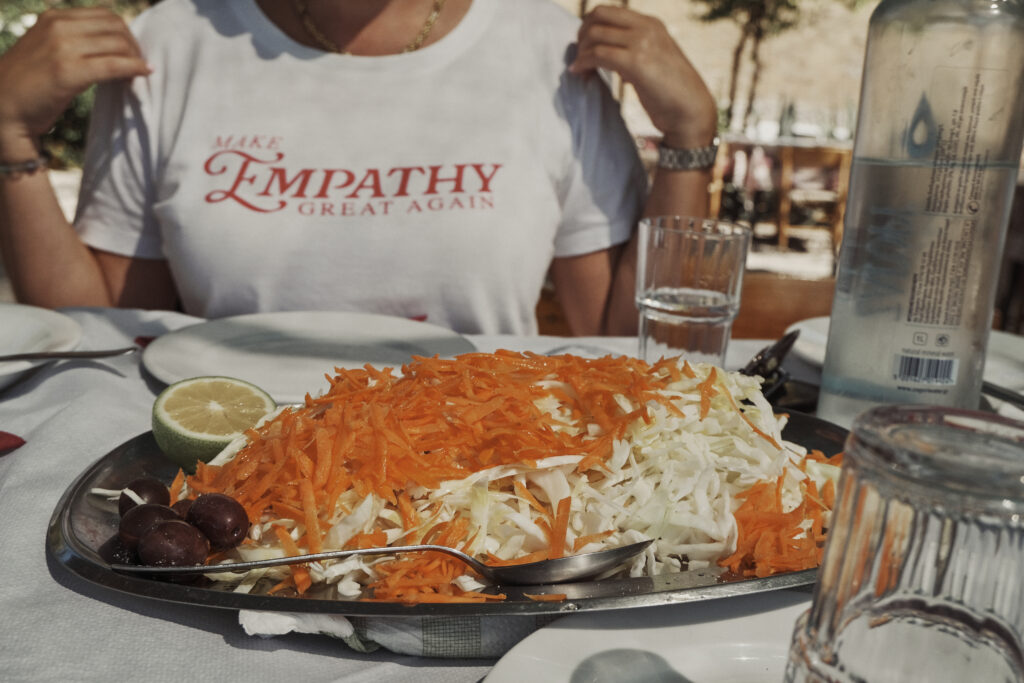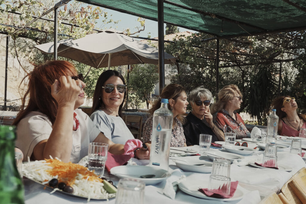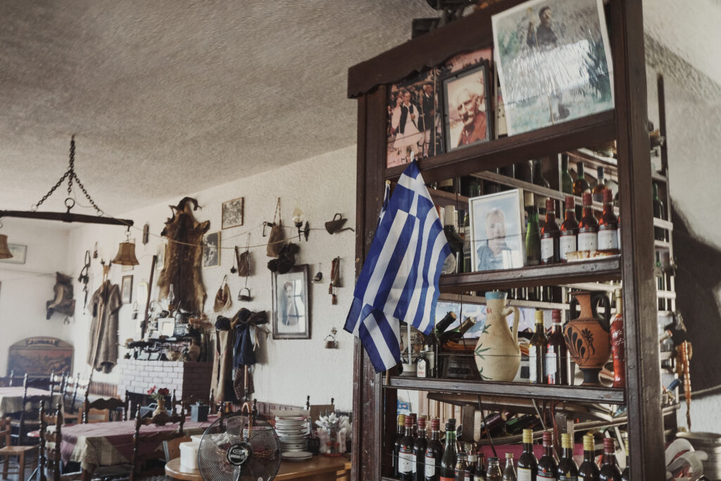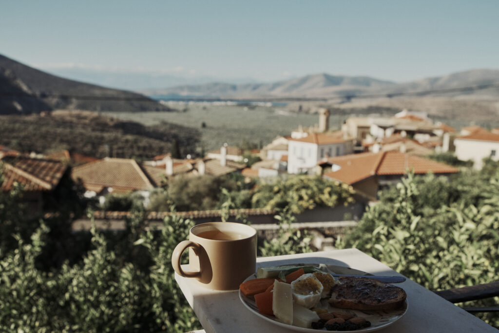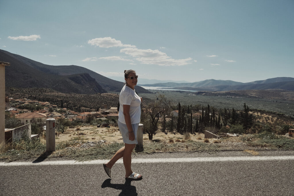 Interestingly, just an 11-minute drive from the ancient site lies a village that has remained of the beaten path. It is designated as a Greek cultural heritage site. The village features stone-paved roads and houses with traditional Greek color palettes: natural hues of green, beige, red, and blue. The architecture is traditional and diverse, spanning various historical periods. You’ll encounter everything from earth brick houses to stone dwellings constructed with local materials, and even see ancient Greek remnants integrated into newer walls, among other unexpected sights during our walks.